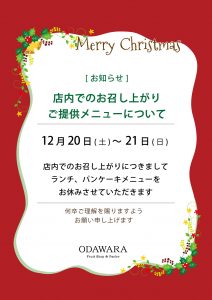 12月23日(火) 〜 25日(木)の期間 店内でのお…