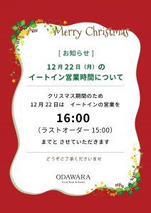 12月23日(火) 〜 25日(木)の期間 店内でのお…