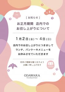 ランチ・パンケーキメニューをお休みさせていただきます。ご了承くださいませ。
