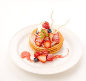 香ばしく焼き上げたパンケーキと苺の甘酸っぱさが広がります。