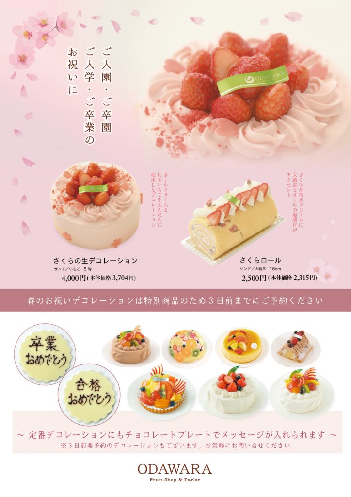 〜ご卒業・ご卒園 ご入学・ご入園、春のお祝いに〜